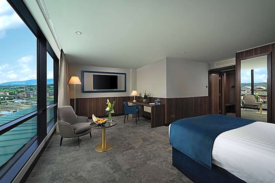 All Suites are front facing overlooking Henry street and the River Shannon. The Junior Suites have a king-size bed with mattresses from the renowned brand, King Koil along with our duck down duvets. Incorporated into the Junior Suite is an Italian marble bathroom with double sinks, large bath tub and a walk in steam shower. Guests will be pampered with a range of Molton Brown products and fluffy Signature Savoy bathrobe and slippers.